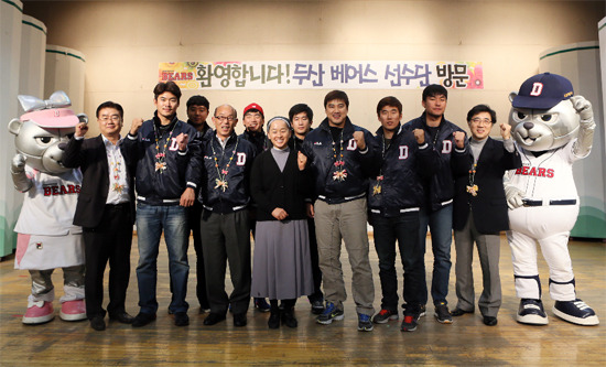 이번 방문 행사에는 두산베어스 김승영 사장을 비롯해 김태룡 단장, 송일수 감독과 홍성흔, 노경은, 홍상삼, 허경민, 변진수, 최재훈, 이정호 등 선수단 8명이 참가했다.