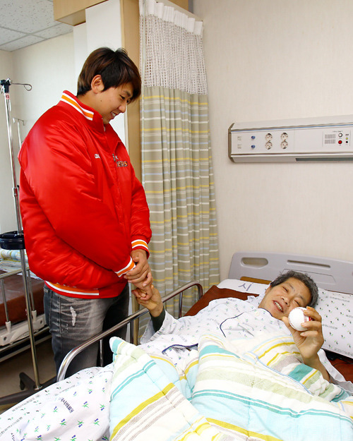 병실 방문 후에는 1층 로비에서 환자, 시민, 의료원 관계자 등을 대상으로 사인회를 실시하기도 했다. 이날 투병 중이던 조정순씨는 “마침 오늘이 수술 날인데 이렇게 와줘서 정말 고맙고 힘이 난다”며 선수들에게 감사의 인사를 전했다. 이에 박정권 선수는 “오늘 수술 잘 받으셔서 건강하게 일어나셨으면 좋겠다”며 응원했다.