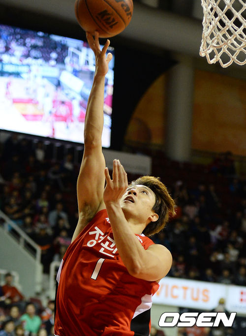 1쿼터, KGC 김태술이 골밑슛을 하고 있다.