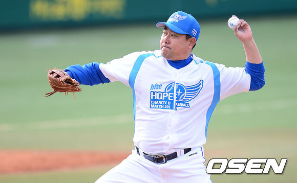 5회초 양신팀 양준혁이 마운드에 올라 역투하고 있다.