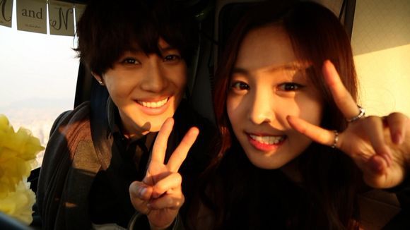 사진 속에서 태민과 나은은 치아가 보일 만큼 환하게 웃으며 카메라를 응시하고 있다. 특히 두 사람은 똑같이 브이(V)자를 그리며 다정하게 포즈를 취하고 있어 실제 연인 같은 분위기가 물씬 풍긴다.