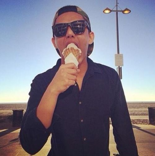 사진에는 유아인이 검정색 셔츠를 입은 채 아이스크림을 먹는 모습이 담겨 있다. 선글라스를 낀 채 지은 표정이 익살스럽다.