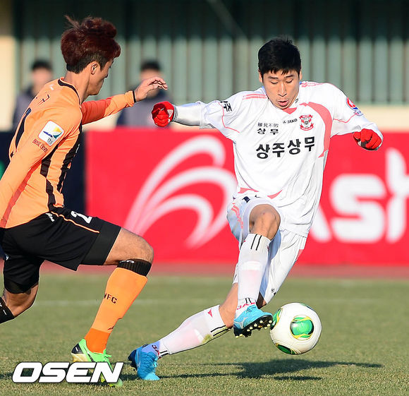7일 오후 강릉시 강릉종합운동장에서 열린 2013 현대오일뱅크 K리그 승강 플레이오프 2차전 강원 FC와 상주 상무의 경기 후반 이근호가 문전 돌파를 시도하고 있다.