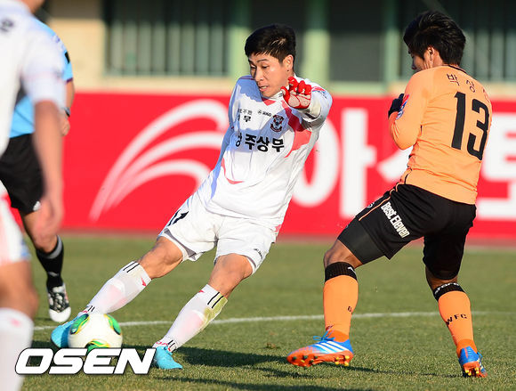 7일 오후 강릉시 강릉종합운동장에서 열린 2013 현대오일뱅크 K리그 승강 플레이오프 2차전 강원 FC와 상주 상무의 경기 후반 이근호가 슈팅을 시도하고 있다.