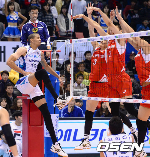 3세트 삼성화재 레오가 LIG손해보험의 블로킹 벽을 피해 강타를 날리고 있다./sunday@osen.co.kr