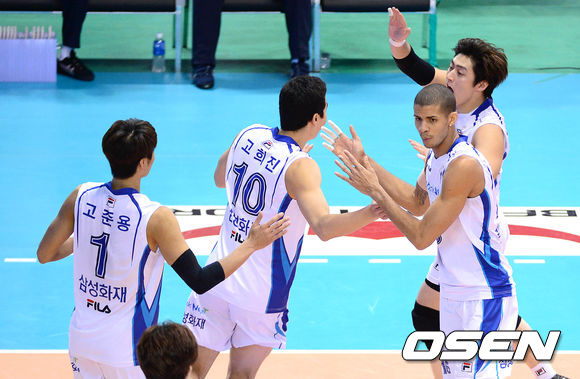 삼성화재는 7일 대전충무체육관에서 열린 NH농협 2013-2014시즌 V리그 남자부 2라운드 LIG손해보험과 경기서 세트 스코어 3-0(25-18, 25-13, 25-20) 완승을 거뒀다. 이날 승리로 8승 2패(승점 23)를 만든 삼성화재는 2위 우리카드(승점 16)와 승점차를 더욱 벌리며 선두 질주의 채비를 갖췄다. 반면 LIG손해보험은 최하위 러시앤캐시에 패한지 불과 이틀 후 삼성화재에 또다시 완패하며 3승 6패(승점 10), 2연패의 늪에 빠졌다.