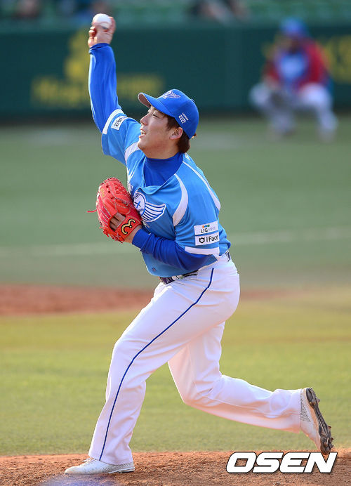 8회말 김현수가 역투하고 있다.