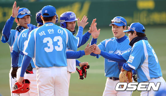 승리를 거둔 종범신팀 선수들이 기뻐하고 있다./youngrae@osen.co.kr