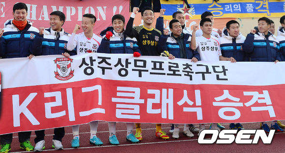 역사적인 K리그 첫 승강 플레이오프의 주인공은 상주 상무였다. 상주가 꿈에도 그리던 K리그 클래식(1부 리그) 승격에 성공했다.