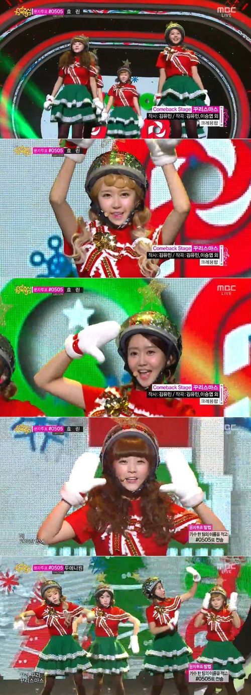 크레용팝은 7일 오후 방송된 MBC '쇼!음악중심'에 출연, '빠빠빠' 이후 처음으로 발표한 신곡 '꾸리스마스' 무대를 선보였다.