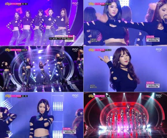 나인뮤지스는 7일 오후 방송된 MBC '쇼!음악중심'에 출연해 신곡 '글루'의 컴백 무대를 선보였다.