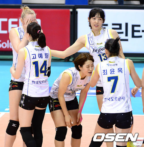 경기 종료 후 도로공사 선수들이 승리의 기쁨을 나누고 있다./sunday@osen.co.kr