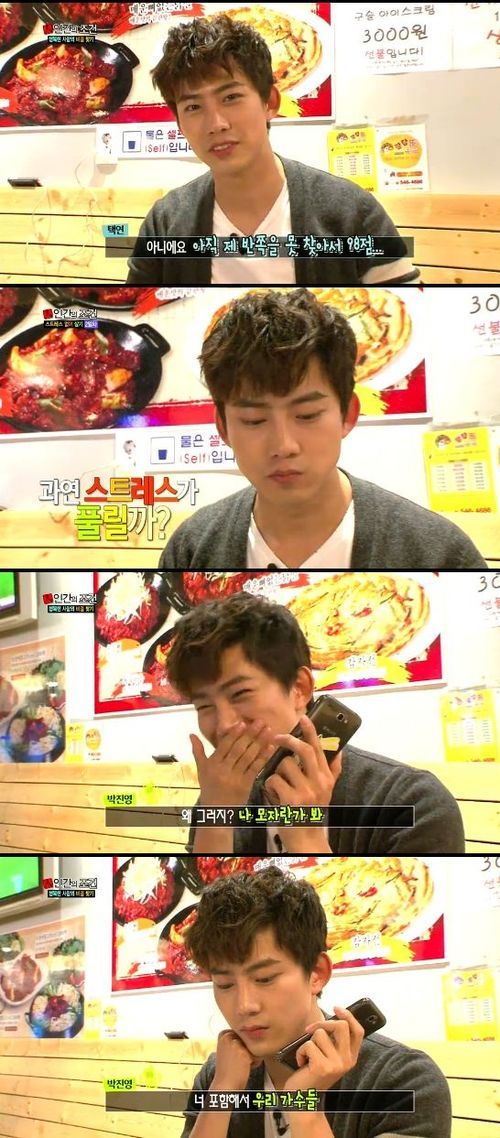 이날 옥택연은 '행복한 사람을 찾아가라'는 미션을 받고 박진영에게 전화를 걸었다. 박진영은 행복지수를 묻는 택연의 질문에 "나 요즘 진짜 행복하다. 모자른가보다. 진짜 행복하다"라고 말했다.