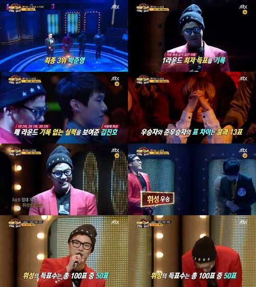 휘성은 100표 중 50표를 획득, 최종우승 자리에 올랐다. 김진호는 역대 준우승자 최고 득표인 37표 획득했다.