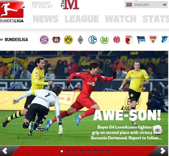 레버쿠젠은 8일 새벽(한국시간) 지그날 이두나 파크에서 열린 도르트문트와의 2013-2014 독일 분데스리가 15라운드 경기서 전반 18분 터진 손흥민의 결승골에 힘입어 1-0으로 승리했다. 승점 3점을 추가한 레버쿠젠은 12승 1무 2패 승점 37점으로 1위 바이에른 뮌헨(41점)을 바짝 뒤쫓게 됐다.