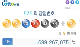 한편 로또 홈페이지는 7일 발표 후 1등 당첨금액이 잘못 게재되는 등 마비사태가 벌어지기도 했다.