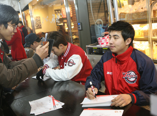 7일 오후 3시부터 4시까지는 롯데백화점 광주점 9층 이벤트홀에서 안치홍, 양현종, 신종길, 김주찬, 이대형 등 5명이 사인회를 개최해 뜨거운 호응을 받았다.
