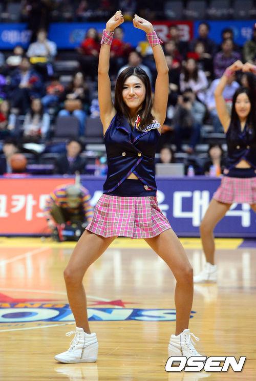 8일 오후 고양시 고양체육관에서 열린 '2013-2014 KB국민카드 프로농구' 고양 오리온스와 울산 모비스의 경기 시작전 치어리더들이 공연을 펼치고 있다.