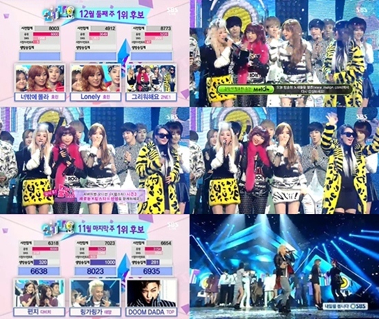 특히 2NE1은 '인기가요' 이외에도 MBC '쇼!음악중심'과 케이블채널 엠넷 '엠카운트다운'에서도 1위에 오르는 등 많은 사랑을 받고 있다.
