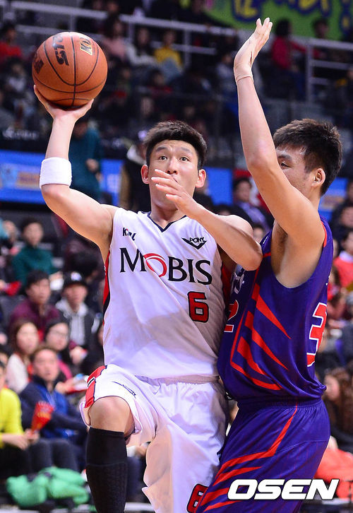 8일 오후 고양시 고양체육관에서 열린 '2013-2014 KB국민카드 프로농구' 고양 오리온스와 울산 모비스의 경기 3쿼터 양동근이 김승원을 피해 슛을 시도하고 있다.