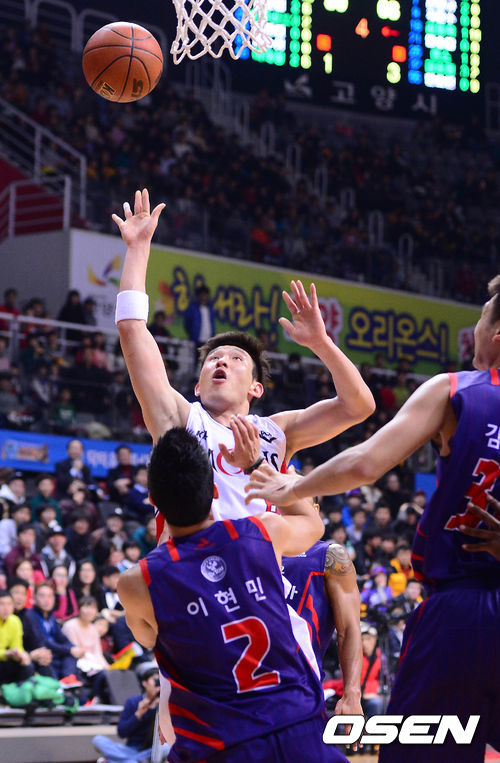 8일 오후 고양시 고양체육관에서 열린 '2013-2014 KB국민카드 프로농구' 고양 오리온스와 울산 모비스의 경기 4쿼터 양동근이 슛을 시도하고 있다.