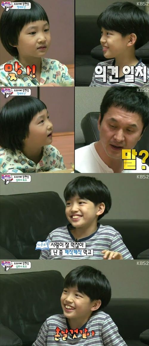 '슈퍼맨' 준우와 준서가 먹방계의 샛별, 추사랑을 경계하는 모습으로 눈길을 끌었다.