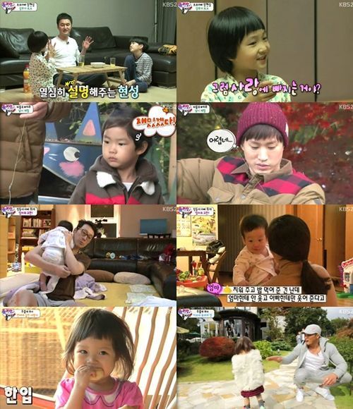 8일 방송된 KBS 2TV 예능프로그램 '해피선데이-슈퍼맨이 돌아왔다'(이하 '슈퍼맨') 6화에서는 타블로와 하루, 추성훈과 사랑, 장현성과 준우, 준서, 이휘재와 서언, 서준의 이야기가 그려졌다.