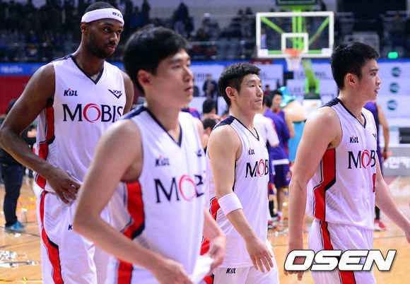 8일 오후 고양시 고양체육관에서 열린 '2013-2014 KB국민카드 프로농구' 고양 오리온스와 울산 모비스의 경기 종료 후 모비스 선수들이 코트를 빠져나가고 있다.