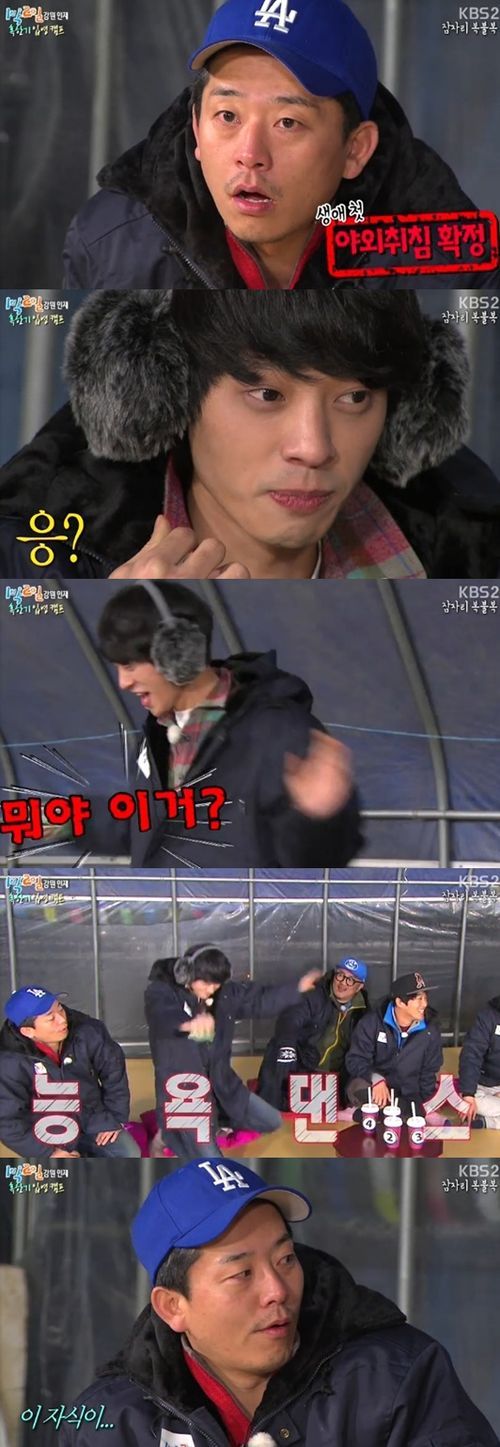 '1박2일' 정준영이 사차원 매력을 대방출하는 능욕 댄스로 김준호를 폭발하게 했다.