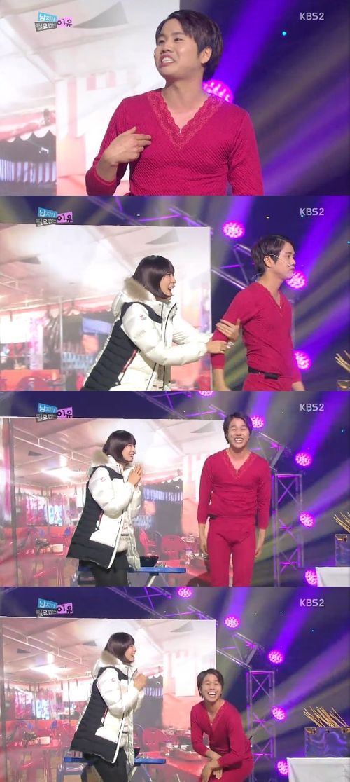 여기에 정승환은 박소라가 국물을 입에 넣어주자 “남자랑 포장마차를 많이 와 보셨나봐요. 나는 포장마차가면 편하게 한잔 할 수 있다고 해서 편한 복장으로 왔어”라며 내복 패션을 선보여 관객들을 폭소케했다.