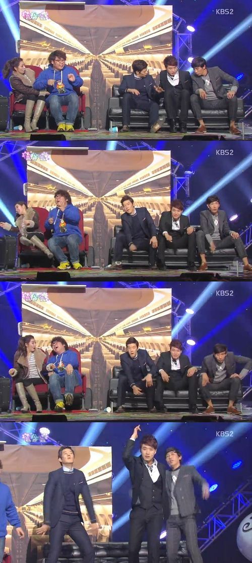 ‘개콘-놈놈놈’ 김기리와 복현규, 유인석이 신화의 의자춤을 선보여 여성 관객들을 환호케했다.