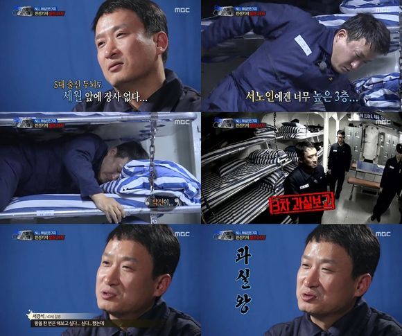 침대에서 내려오라는 당직사관의 말에 서경석은 쑤시는 몸을 이끌고 3층 침대에서 어기적어기적 내려와 또 한번 웃음을 자아냈다. 침대에서 땀을 뻘뻘 흘리며 내려오는 '서노인', 서경석의 모습은 웃음 뿐만 아니라 보는 이들의 마음을 안타깝게 만들었을 정도.