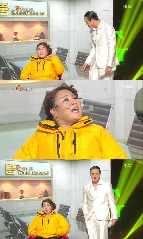 8일 오후 방송된 KBS 2TV '개그콘서트'(이하 '개콘')의 코너 '뿜엔터테인먼트'에는 김원효, 김지민, 김민경, 박은영, 신보라, 유인석, 김혜선, 김준호 등이 출연했다.
