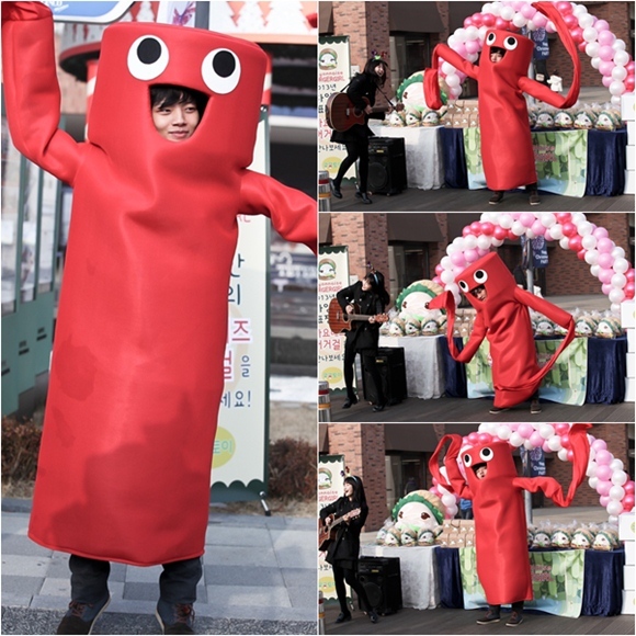 이와 관련해 9일 공개된 '감자별' 촬영현장 사진에서 여진구는 이른바 '행사장 바람인형'으로 변신해 눈길을 끈다. 여진구는 붉은색의 행사장용 바람인형 옷을 입은 채 귀여운 춤을 추고 있어 웃음을 자아낸다.