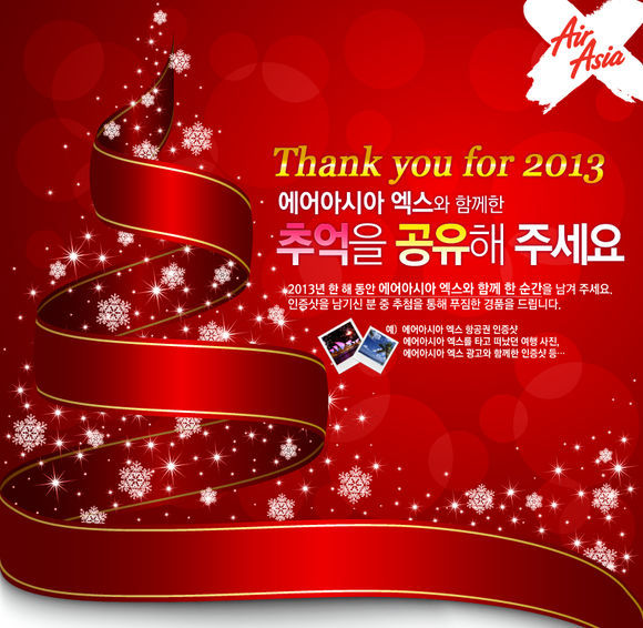 이번 페이스북 이벤트는 2013년을 마무리하며, 에어아시아 엑스와 함께한 추억을 기념하는 인증샷을 에어아시아 엑스 공식 페이스북 페이지에 남기면 된다.