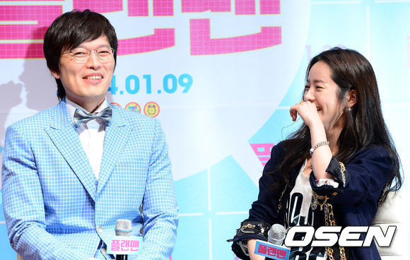 한지민은 9일 오전 서울 롯데시네마 건대입구에서 열린 영화 ‘플랜맨’ 제작보고회에서 “정재영이 이렇게 귀여울 줄 몰랐다”고 밝혔다.