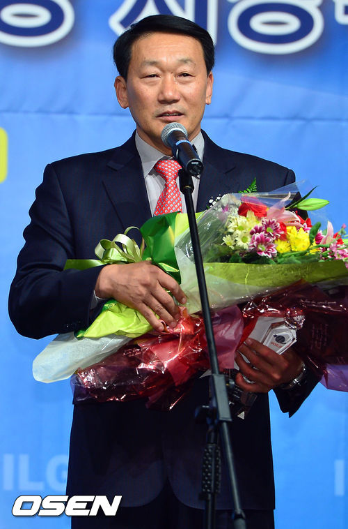 9일 오후 서울 청담동 리베라호텔 베르사이유 홀에서 진행된 '2013 일구대상' 시상식에서 아마지도상을 받은 경성대 윤영환 감독이 소감을 말하고 있다.