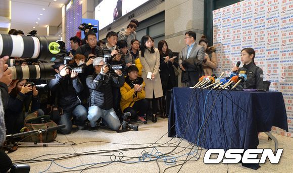 '피겨여왕' 김연아가 9일 오후 크로아티아에서 열린 '2013 골든 스핀 오브 자그레브'에서 우승을 차지한 뒤 인천공항을 통해 귀국해 취재진과 질의응답 시간을 갖고 있다.