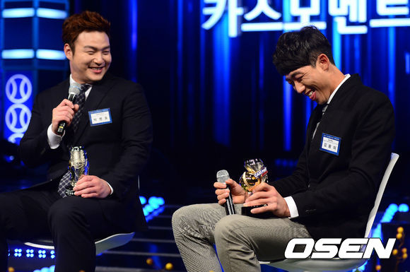 카스모멘트 베스트 5에 선정된 넥센 박병호, LG 김용의가 질문에 답을 하며 즐거워하고 있다.