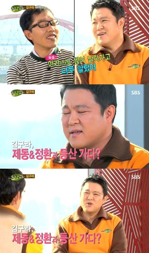개그맨 김구라가 어려운 시절 가수 신정환, 방송인 김제동과 두건을 쓰고 등산을 했다고 말했다.