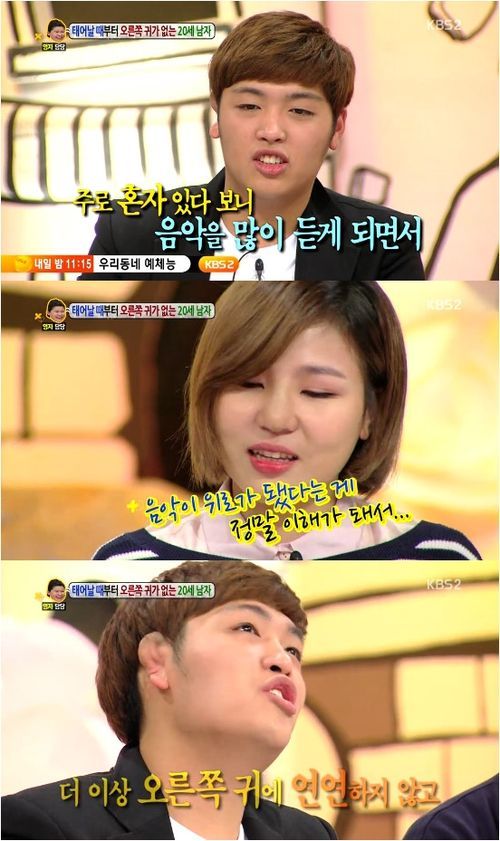 그는 자신의 치부라고 할 수 있는 귀를 보여주며 밝은 미소를 지었다. 분위기는 무거워지지 않았다. MC들은 대신에 이 청년의 용기 있는 선택에 따스한 응원을 했다. 이영자는 자신의 조카가 1급 장애인이라는 사실을 고백하며, 공감대를 형성했다.