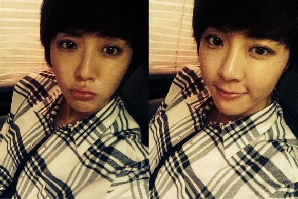 공개된 두 장의 사진 속 박한별은 새침한 표정과 귀여운 표정 지으며 카메라를 응시하고 있다. 그녀의 짧은 머리와 소년 같은 모습이 인상적이다.