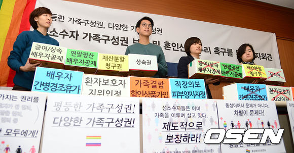 동성애자인권연대 등 인권단체들로 구성된 '성소수자 가족구성원 보장을 위한 네트워크 준비위원회'는 '성소수자 가족구성권 보장 및 혼인신고 수리 촉구를 위한 기자회견'을 열었다.