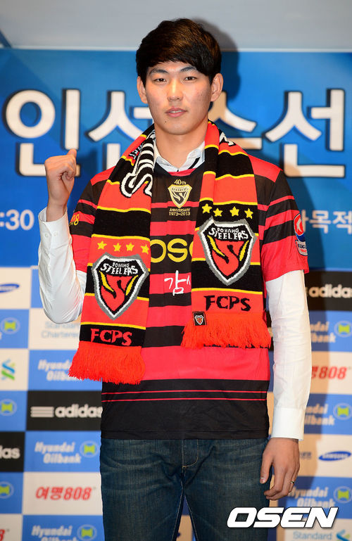 10일 오후 서울 신문로 축구회관에서 열린 2014년도 K리그 신인선수 지명 드래프트에서 포항 자유지명선수 김진영이 기념촬영을 하고 있다.