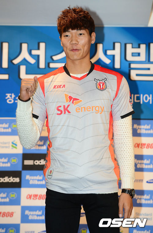 10일 오후 서울 신문로 축구회관에서 열린 2014년도 K리그 신인선수 지명 드래프트에서 제주 자유선발선수 김경민이 기념촬영을 갖고 있다.