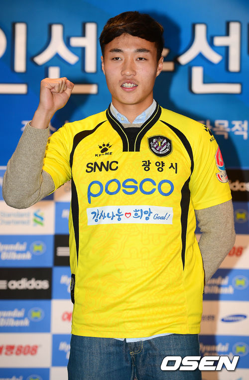 10일 오후 서울 신문로 축구회관에서 열린 2014년도 K리그 신인선수 지명 드래프트에서 전남 자유선발선수 안용우가 기념촬영을 하고 있다.