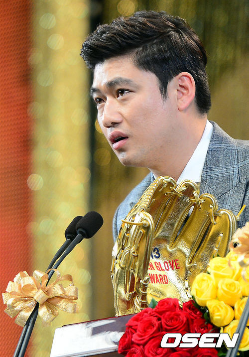 선발로서 뛰어난 활약을 펼친 크리스 세든(SK, 14승 평균자책점 2.98), 찰리 쉬렉(NC, 11승 평균자책점 2.48), 레다메스 리즈(LG, 10승 평균자책점 3.06 188탈삼진) 등 뛰어난 경쟁자들을 제치고 골든글러브를 따낸 손승락. 손승락은 골든글러브 수상으로 지난 1996년 투수 3관왕(다승-18승, 평균자책점-1.88, 세이브포인트-40세이브, 24세이브+16구원승) 한화 구대성 이후 17년 만에 투수 부문 골든글러브를 따낸 마무리투수가 되었다.