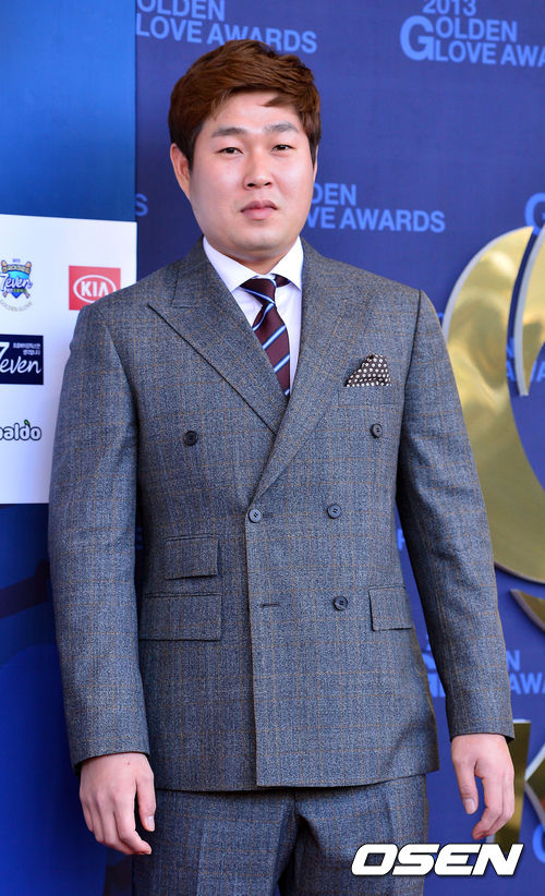 두산 양의지가 10일 오후 서울 삼성동 코엑스 오디토리움에서 열리는 '2013 한국야쿠르트 세븐 프로야구' 골든글러브 시상식에 참석해 레드카펫을 밟은뒤 포즈를 취하고 있다.