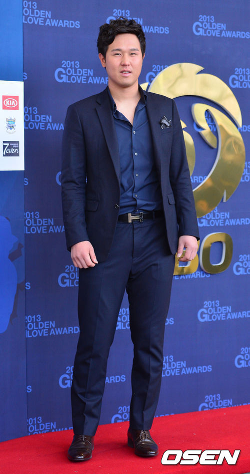 SK 최정이 10일 오후 서울 삼성동 코엑스 오디토리움에서 열리는 '2013 한국야쿠르트 세븐 프로야구' 골든글러브 시상식에 참석해 레드카펫을 밟은뒤 포즈를 취하고 있다.