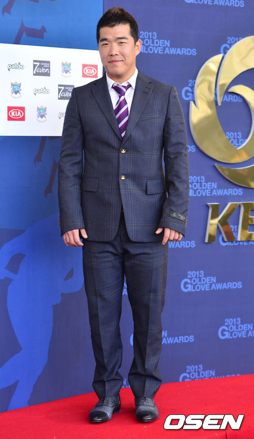 SK 정근우가 10일 오후 서울 삼성동 코엑스 오디토리움에서 열리는 '2013 한국야쿠르트 세븐 프로야구' 골든글러브 시상식에 참석해 레드카펫을 밟은뒤 포즈를 취하고 있다.
